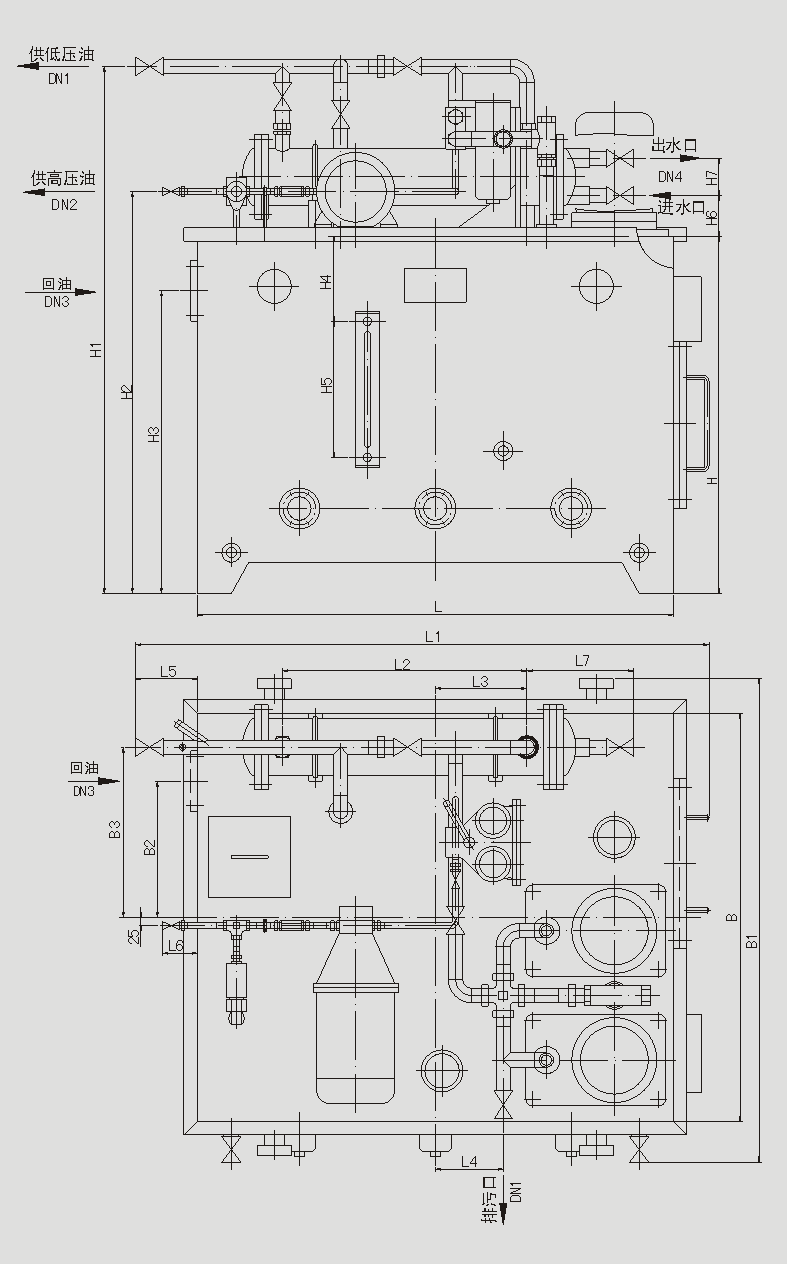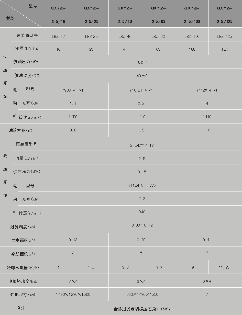 | 高低压稀油站(GXYZ型) 一、概述 GXYZ型高低压稀油站适用于润滑介质运动粘度为22~460cSt(相当于ISO