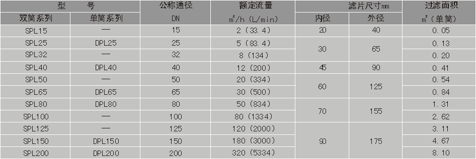 | 网片式油滤器(SPL、DPL型,GB4733-84) 二、技术参数 |